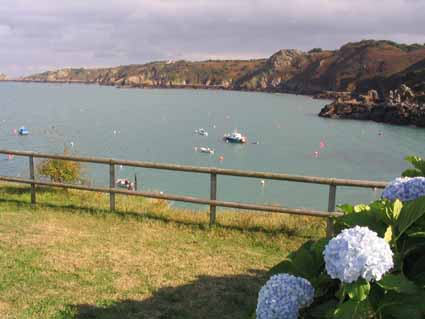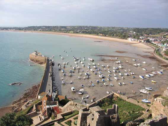 Von deren Mauern aus schweift der Blick weit über eine friedlich-liebliche Landschaft. Leicht geschwungen breiten sich Felder aus, die von holsteinisch anmutenden Knicks durchzogen sind. Auf grünen Wiesen weiden die typischen braunen Jersey-Kühe, und vereinzelt erinnern Palmen daran, dass der Golfstrom die Kanalinseln umspült.