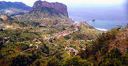 hinab auf Porto da Cruz, wo noch eine Zuckerrohrmühle arbeitet.