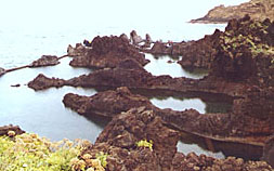 Moniz. In Lavagestein eingelassen laden vom Atlantik