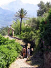 „Eingewandert“ hat sich die gemischte Schar Tags zuvor auf einem alten Postweg unterhalb des Städtchens Deya. Auf- und Abstieg vorbei an Terrassen mit unzähligen bizarr geformten Olivenbäumen erfordern zwar kein übergroßes Geschick. Doch hätten auch die Briefträger sicher schon gerne in der liebevoll eingerichteten „Posada del Rei Jaume 3“ gerastet. In ihrer restaurierten Ölmühle bieten „König Jaume“ und seine emsige Frau Antonia den Wanderern frisch gepressten Orangensaft und Mandeln aus eigener Ernte an. Oder sie hätten sich im Winter mit den Besitzern um den winzigen Eisen-Ofen drängen können, um sich aufzuwärmen und den neuesten Insel-Klatsch auszutauschen. Vielleicht haben sie das Glöckchen der inzwischen verfallenden Kapelle eine Wegstunde später läuten hören. Ganz bestimmt aber hielten die Boten beim grandiosen Blick auf die kreisrunde Bucht von Soller für einen Moment den Atem an und labten sich später auf dem Marktplatz an einem Café con leche. Die Wanderer zieht es dagegen nach Ankunft zum Bahnhof. Von dort erlaubt ihnen der „Rote Blitz“, eine elektrische Siemens-Bahn aus dem Jahr 1912, nach einstündiger Fahrt eine Stippvisite in der nahen Insel-Hauptstadt Palma.